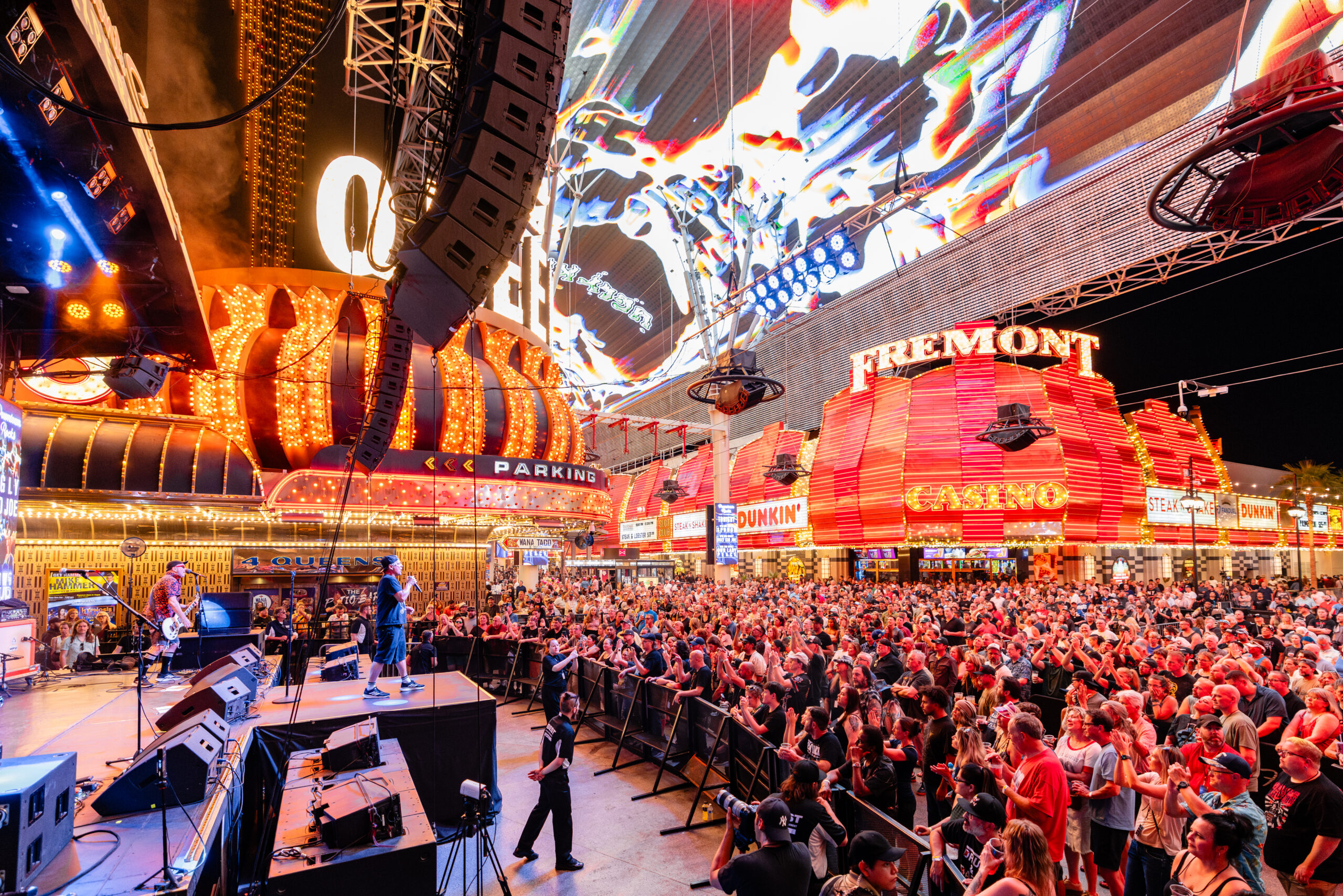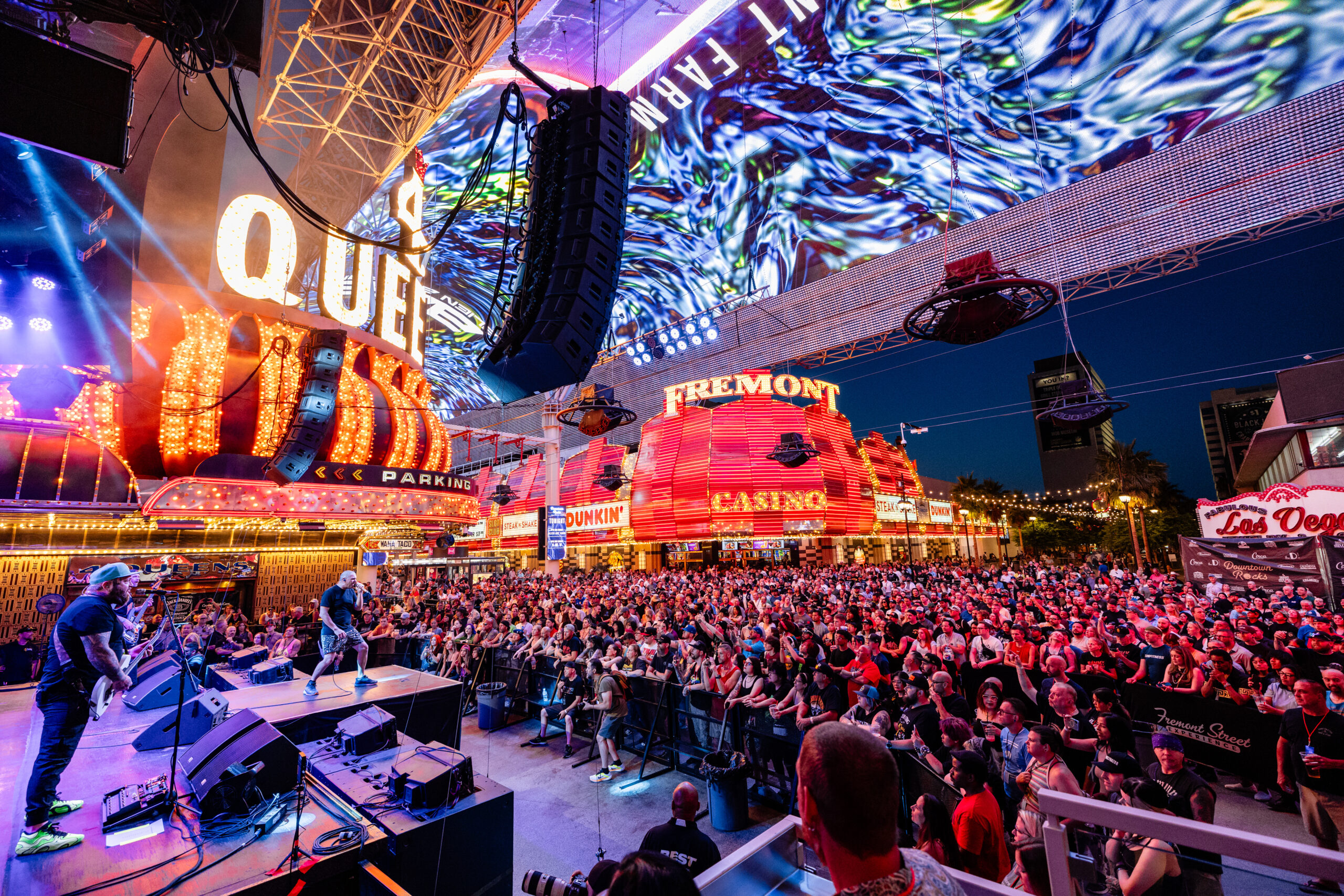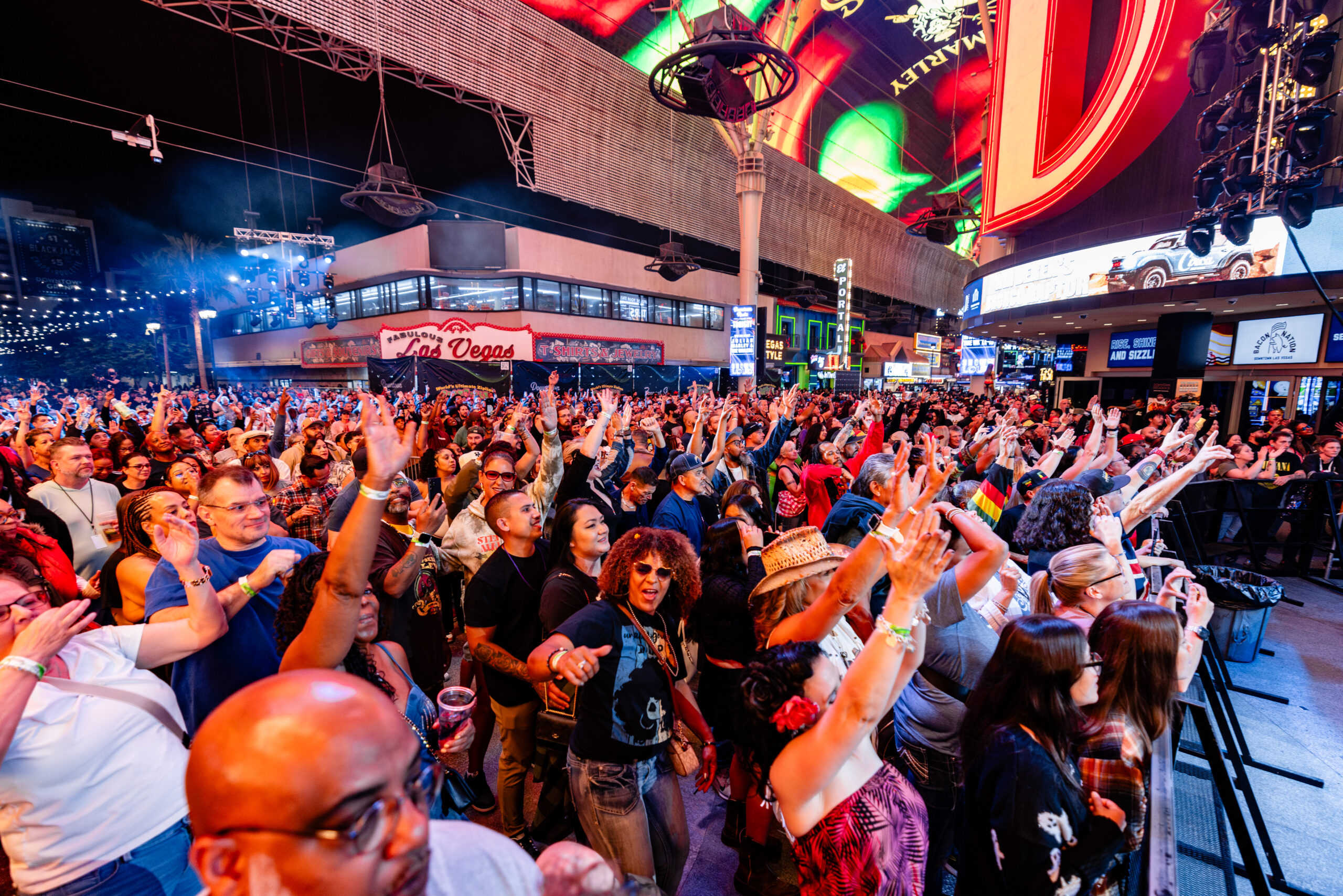 Downtown Las Vegas comes alive at Fremont Street Experience—an open-air entertainment hub with free concerts and dazzling performances across three stages every single night.